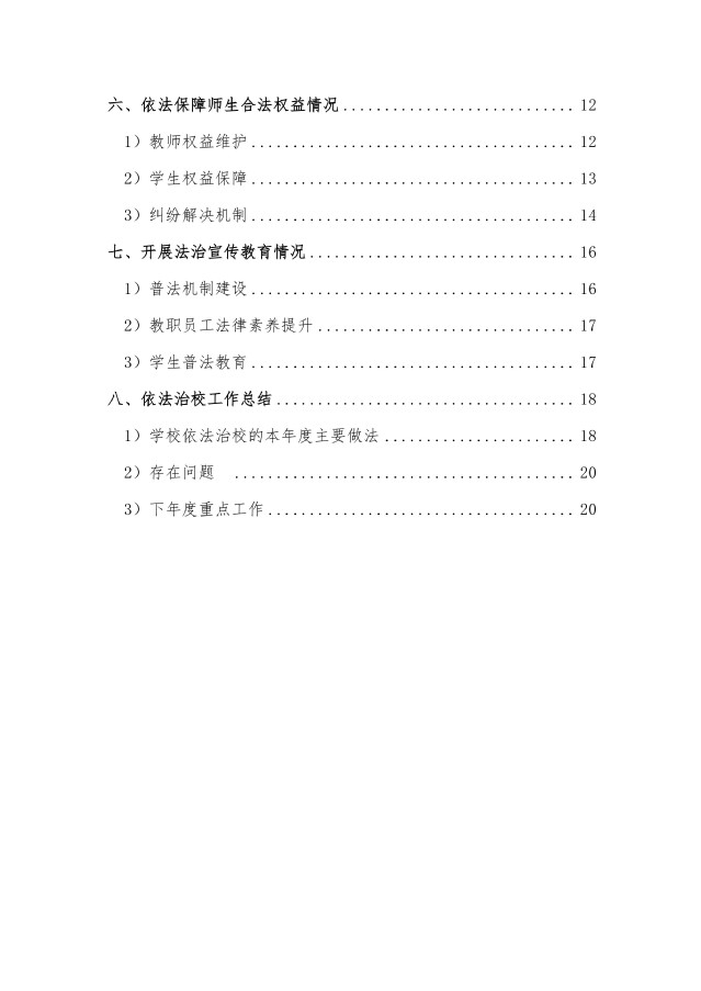 3)下年度重点工作:一是把优质的法治宣传实践特色项目打造为学校品牌;二是从简单的渗透式普法教育升级为浸润式普法教育;三是建设专业化法治师资队伍,开发学生喜闻乐见的法治课程;四是加强与高校及法院、检察院、司法局合作,加强系统普法,进一步提升学校法治课程和法治文化建设的水平。